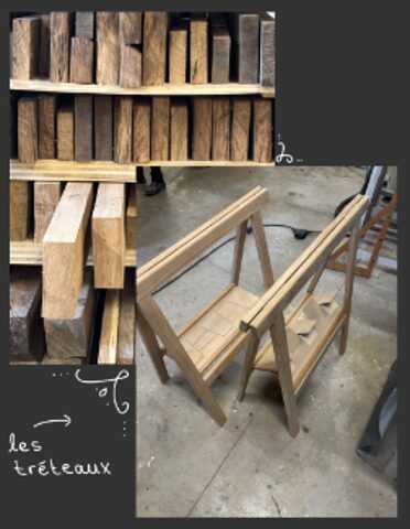 An meinem ersten Arbeitstag nahm mich eine Kollegin mit ihrem Auto mit. Ich hatte mich im Vorhinein mit ihr in Verbindung gesetzt. Die Schreinerei hat mir auf den ersten Blick direkt gefallen! Ich wurde von meinem Chef und seinem Hund sehr nett begrüßt. Die Menuiserie Thelongeon ist einer kleiner Zwei-PersonenBetrieb, der überwiegend traditionell arbeitet. Bereits am ersten Tag habe ich eine tolle Arbeitsaufgabe bekommen: 2 tréteaux (Böcke) bauen. Dafür durfte ich Eichenholz mit stehenden Jahresringen verwenden. magnifique! Alleine mit dieser Aufgabe wurde ich allerdings nicht gelassen. Nach und nach wurden mir Arbeitsschritte und Maschinen erklärt. So konnte ich gleichzeitig Sprache und Technik lernen.