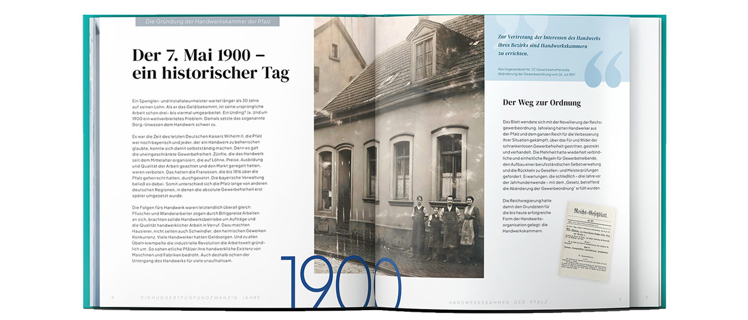 125 Jahre Handwerkskammer der Pfalz – das ist weit mehr als eine Zahl. Es sind Geschichten voller Leidenschaft, Innovation und Gemeinschaft. Freuen Sie sich deshalb in unserem Jubiläumsjahr auf eine außergewöhnliche Chronik.