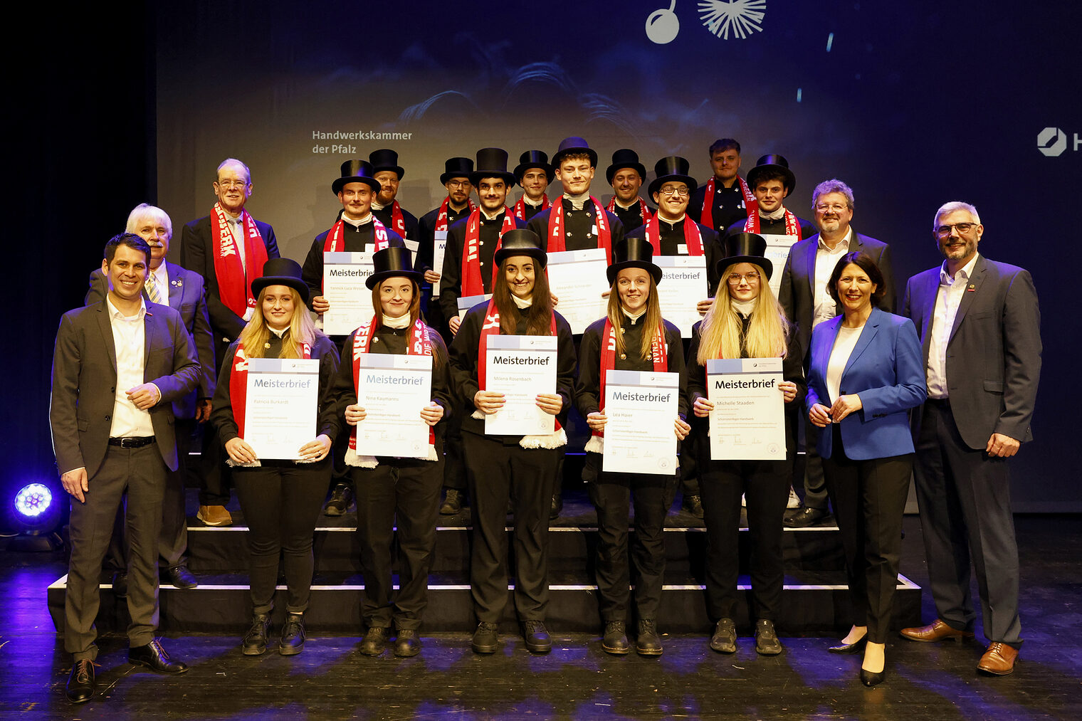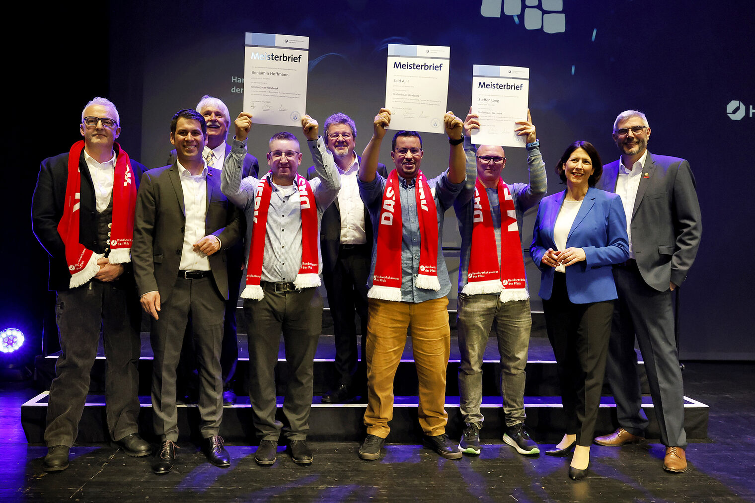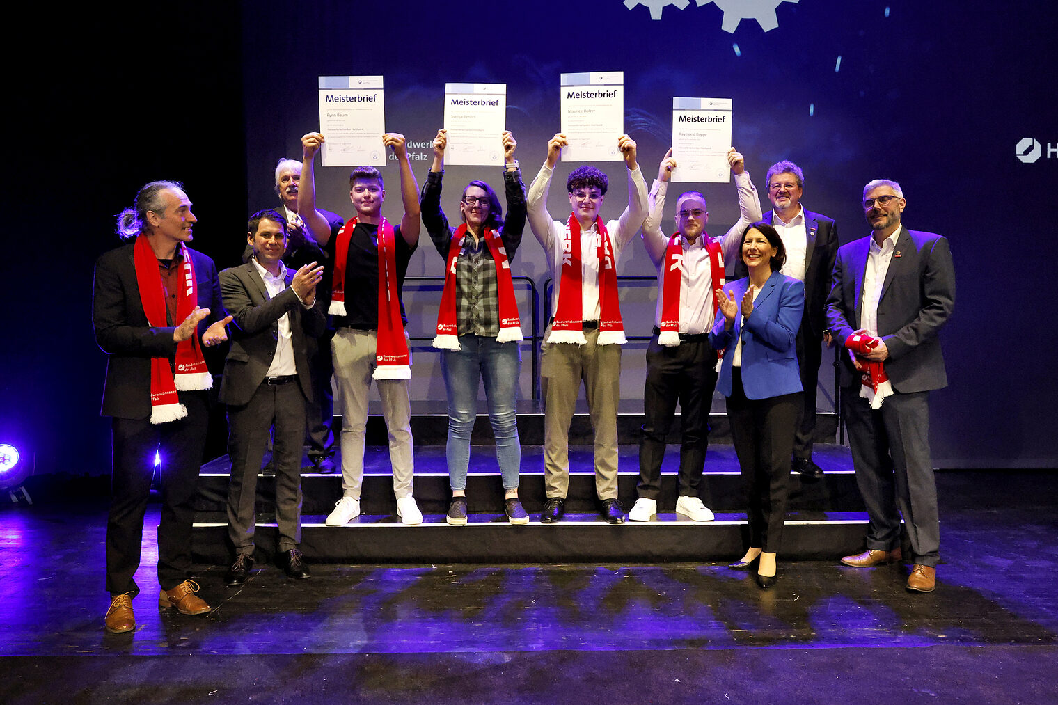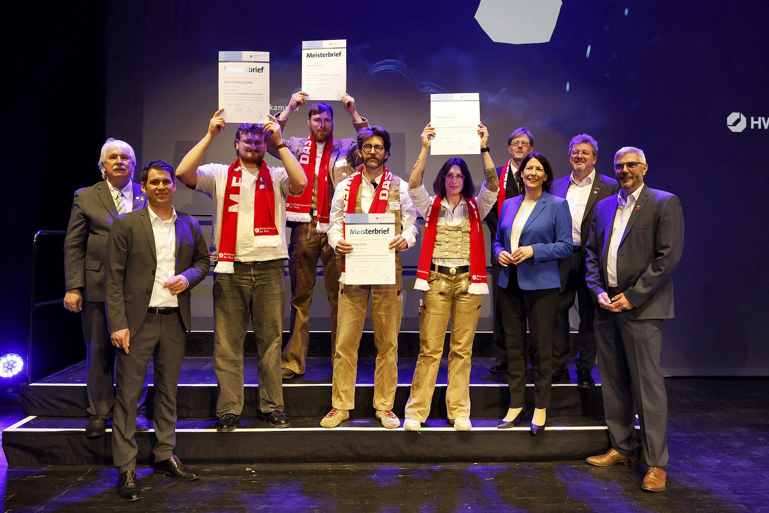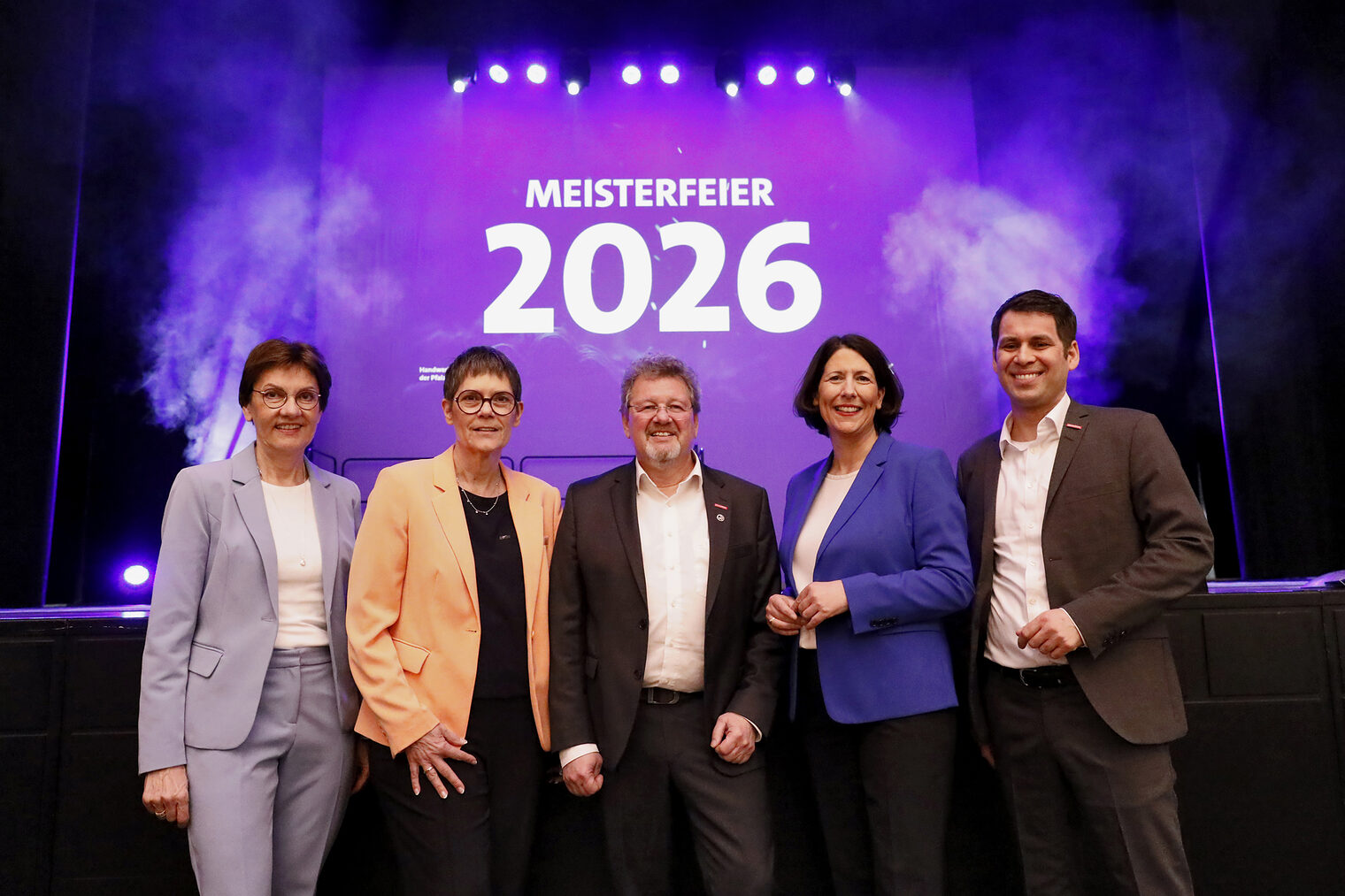 v.l.: Geschäftsführerin Berufsbildung Rita Petry, Staatssekretärin Petra Dick-Walther, Präsident Dirk Fischer, Wirtschaftsministerin Daniela Schmitt, Hauptgeschäftsführer Dr. Till Mischler