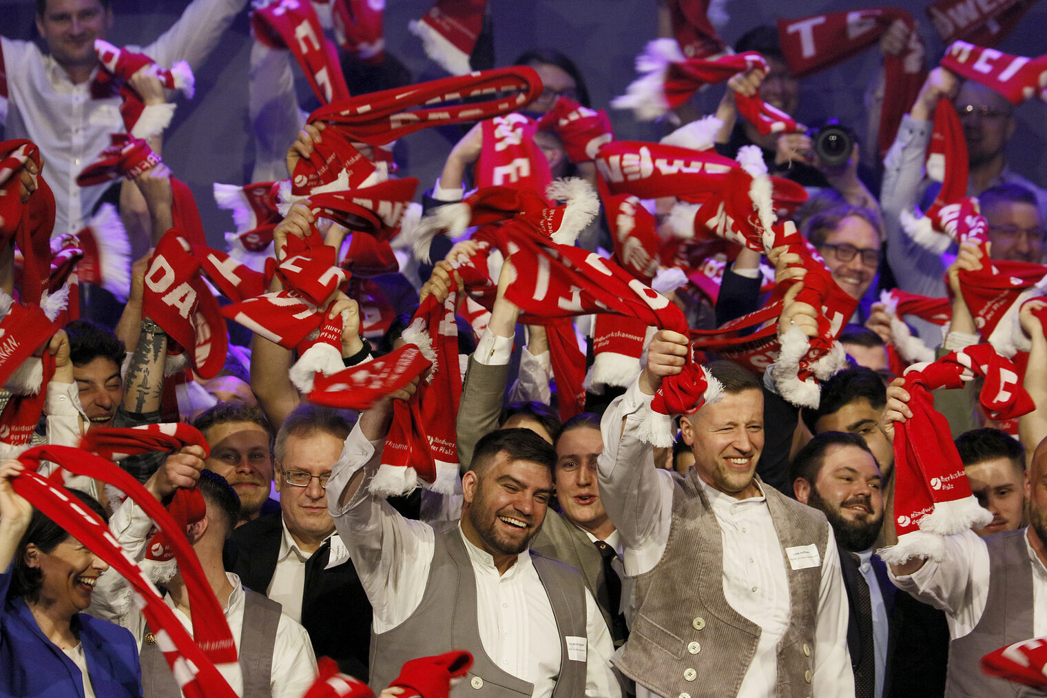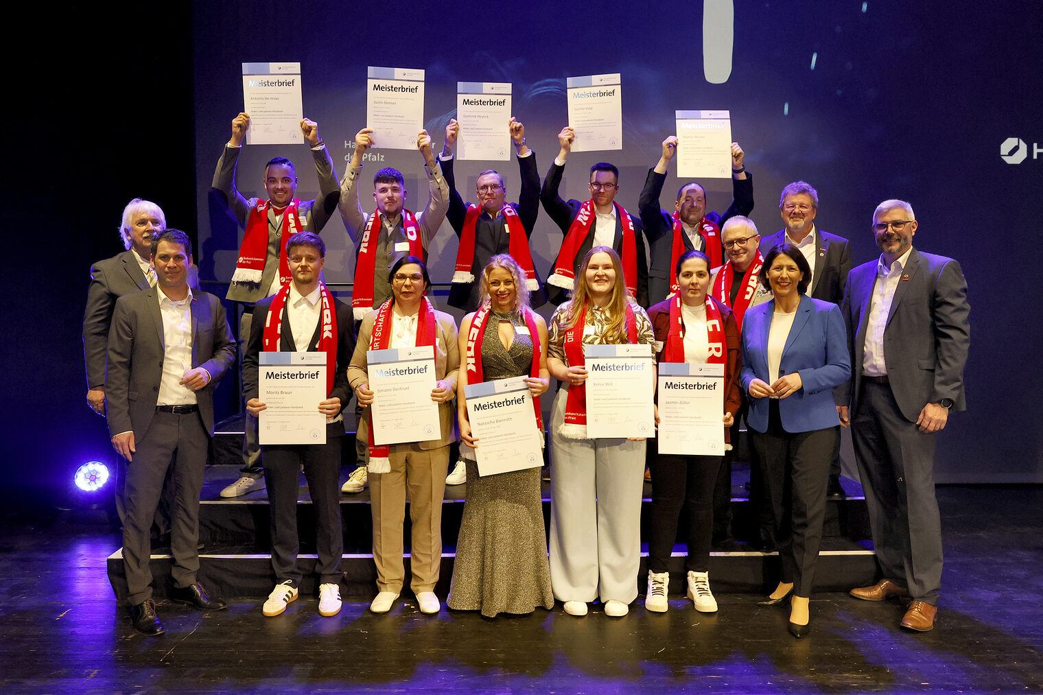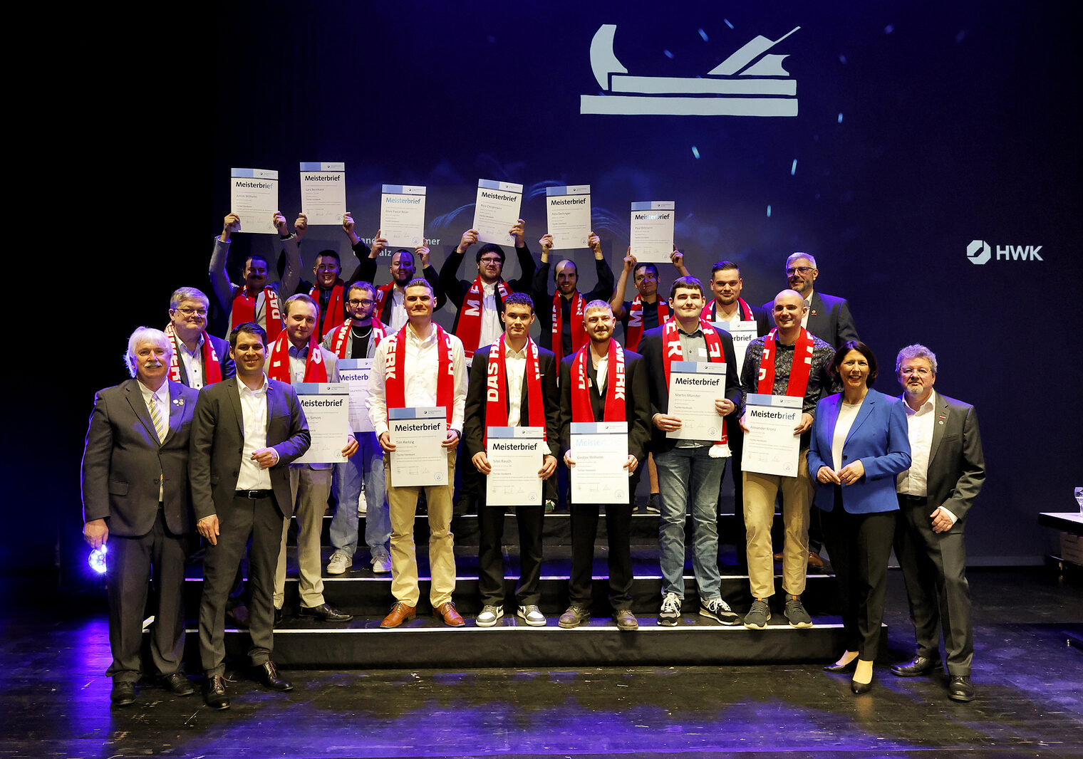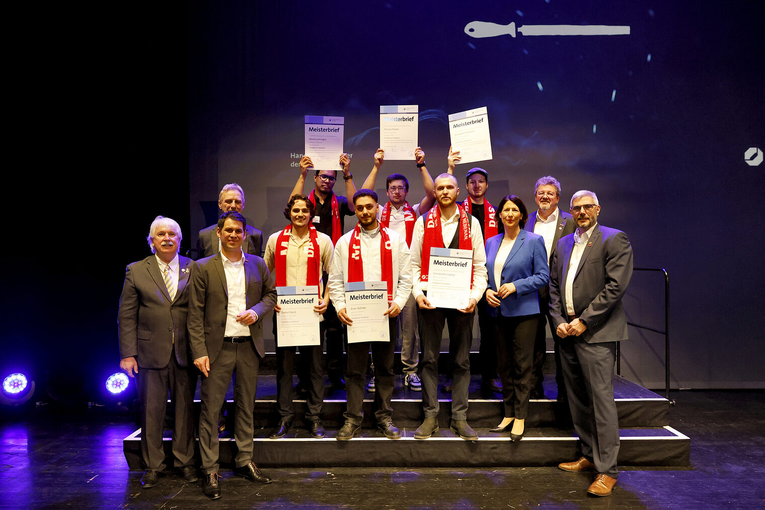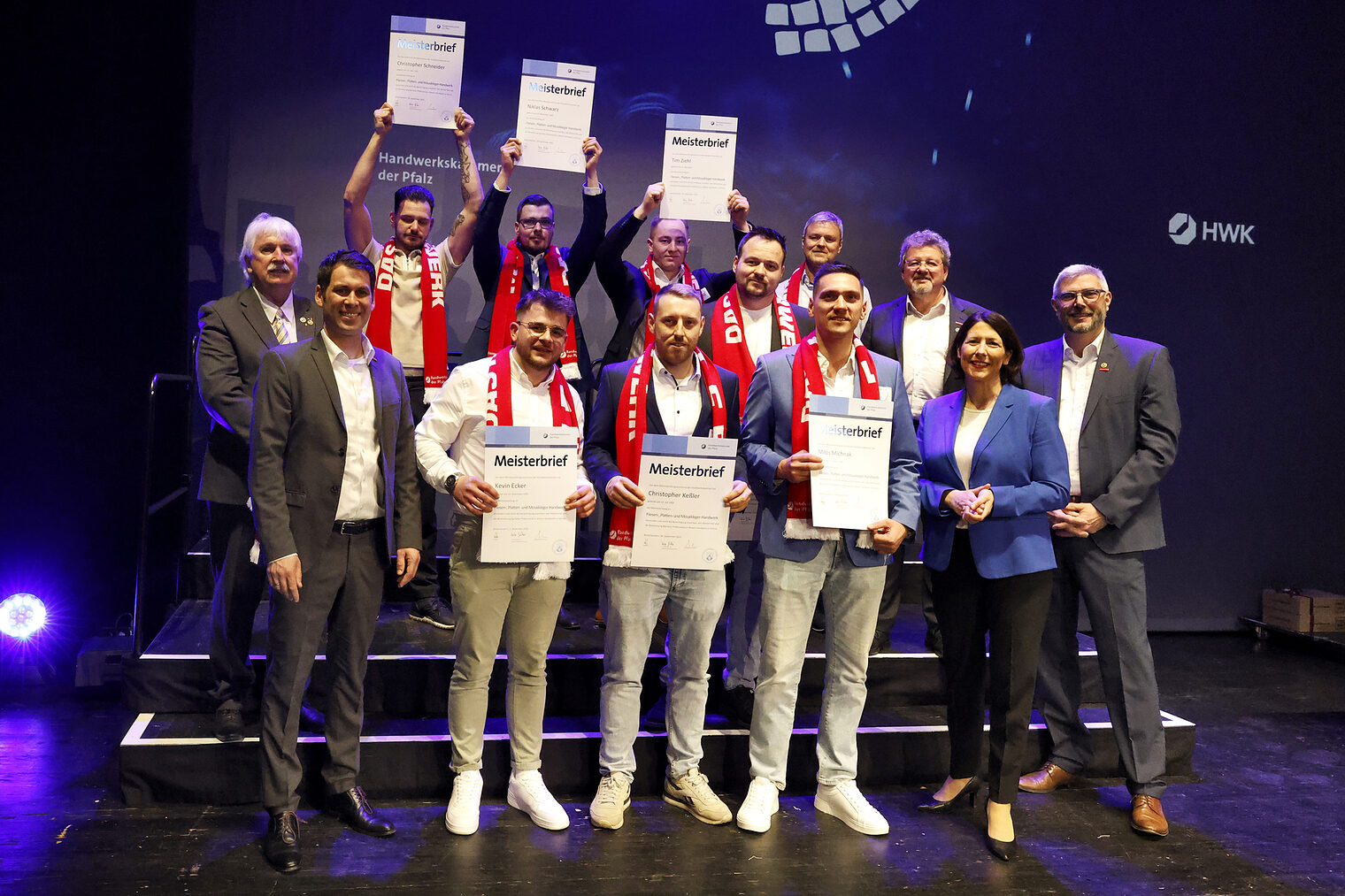 v.l.: Geschäftsführerin Berufsbildung Rita Petry, Staatssekretärin Petra Dick-Walther, Präsident Dirk Fischer, Wirtschaftsministerin Daniela Schmitt, Hauptgeschäftsführer Dr. Till Mischler