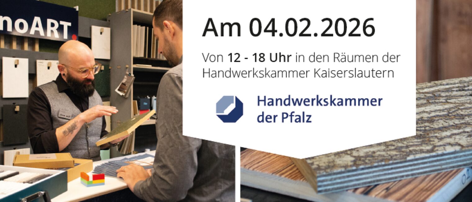 Die Handwerkskammer der Pfalz wird zum Treffpunkt für das Ausbaugewerbe: Freuen Sie sich auf 15 renommierte Hersteller, Produktneuheiten und praxisnahe Anwendungstipps rund um Boden, Türen, Plattenwerkstoffe und Holz im Garten – plus viel Raum für Austausch mit Branchenexperten und Kollegen.